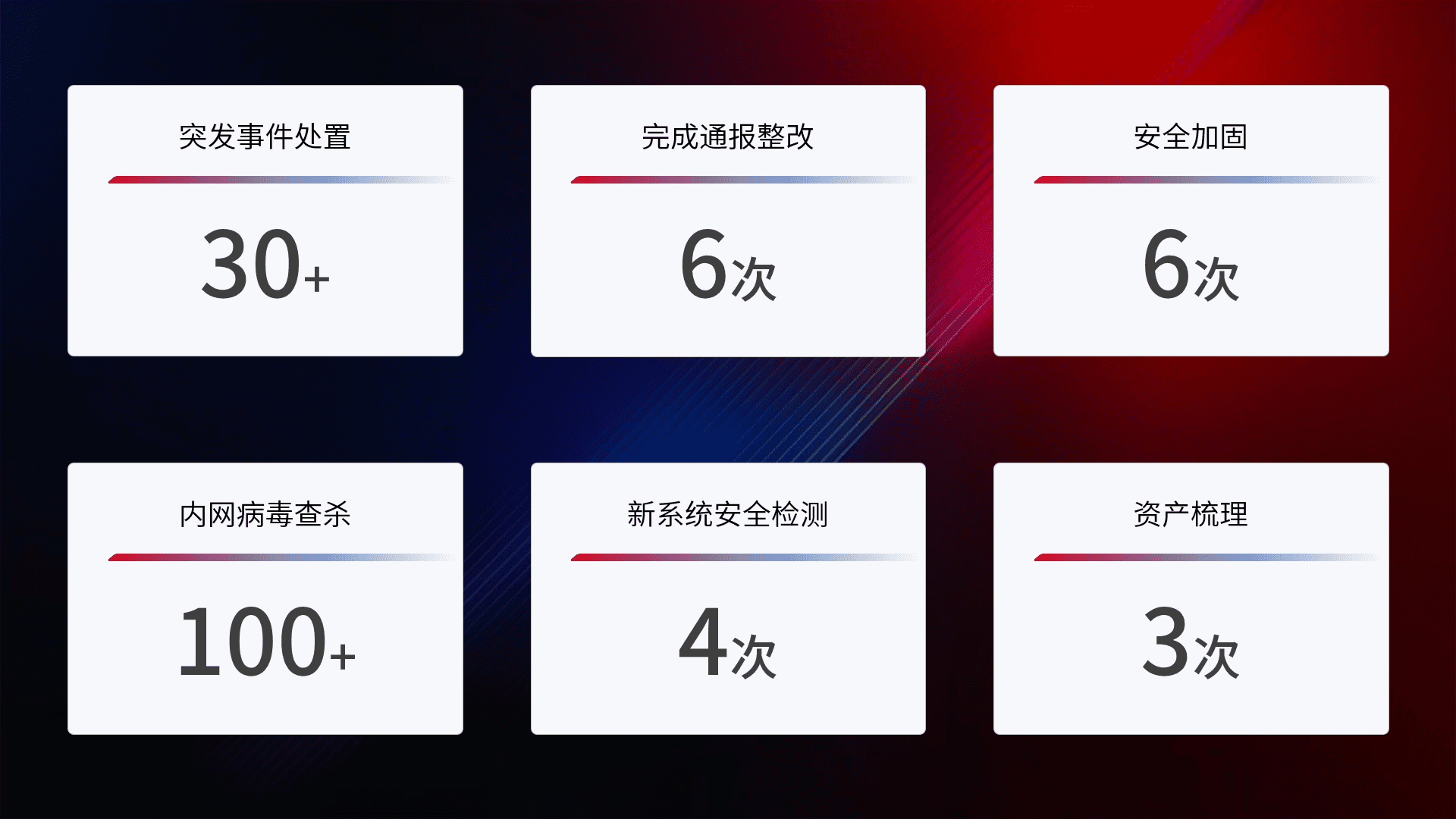 网络安全加固与风险管理:通过技术加固手段,,,如加强区域隔离,,,缩减攻击内网横向移动的范围;优化现有网络安全管理制度,,降低网络威胁暴露面,,,减少被黑客攻击的可能性。。
